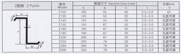 Z型钢的结构尺寸